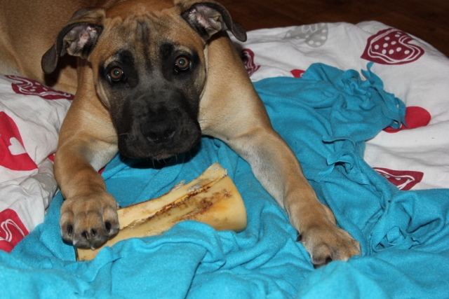 Kjøpte et bein til henne i går, nå er det minimalt hvor mye hun klarer å få av det (ikke bare minimalt, ingenting) Men hun koser seg med det, og er opptatt litt. Det er sikkert god smak på det…