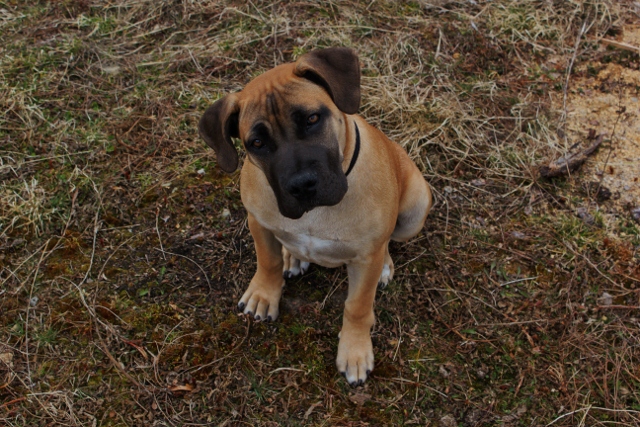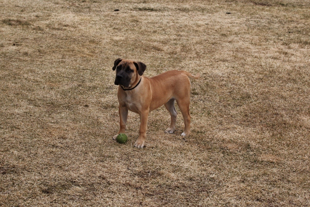 Amanda vokser, er nå ca 46 cm, er første gang vi måler høyden på henne. Jeg har ikke peiling på om det er innenfor det «normale», får uansett ikke gjort så mye med det. Høyden på en voksen Boerboel tispe skal vel være ca 60 cm +/-