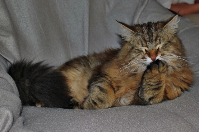 Duke ute på lufteturMorgenvaskKattekosMiddag i går