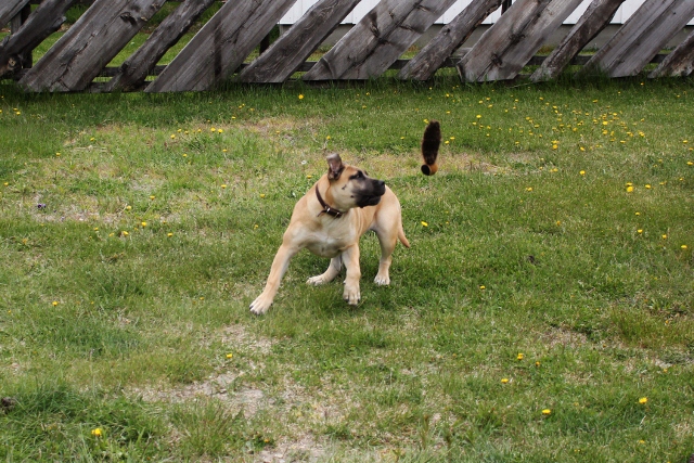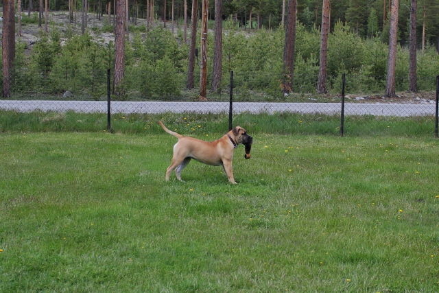 Veldig spent på hvordan hun er om 1 1/2 år, hvor stor hun er, om hun blir en kraftig Boerboel, eller en liten en. Hun skal ihvertfall ikke bli noen tykk Boerboel, men det ser ikke ut som hun har anlegg for det heller. Holder seg veldig fin og slank, og er fremdeles litt «matlei», merkelig nok, er ikke engang varmt. Men kommer seg vel, hun spiser ikke lite, men ikke så mye som før, om det ga noe mening…