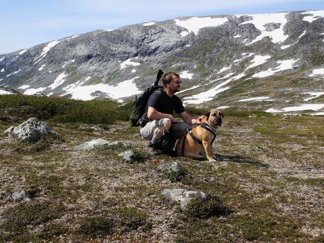 I dag har Amanda badet for første gang, i et fjellvann. Jeg trodde hun kanskje kom til å vasse litt, men hun ble helt vill i vannet, løp, herjet og hoppet. Jeg må si jeg syntes litt synd i han som skulle fiske…