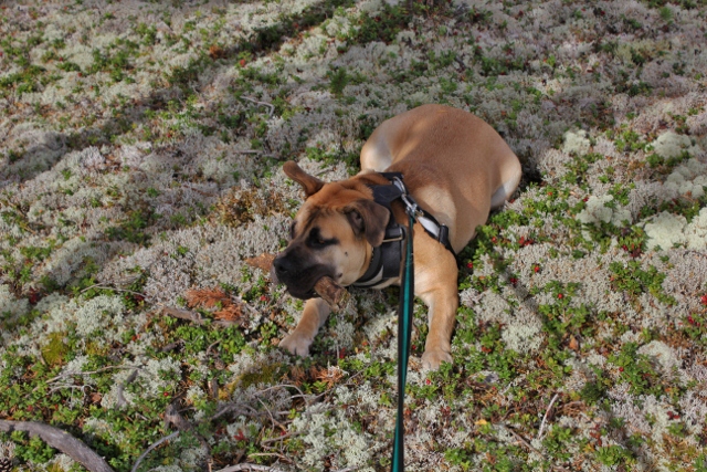 Men etter å ha ventet i syv lange og nesten like mange breie, så begynte jeg å ramse opp ingrediensene til fårikål, da tok de endelig til vett, og ruslet fra veien, og fra der vi skulle gå. Måtte holde et ekstra godt tak i båndet til Amanda når vi gikk forbi der de gikk oppover, men det gikk faktisk greit, snille hunden 🙂