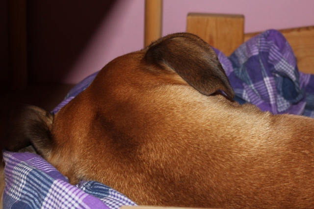 Amanda er svært så omtenksom noen ganger. Natt til i går var hun litt urolig, så jeg våknet flere ganger av henne. Ikke noe spesielt, hun skulle ikke ut, men gikk fra ene liggestedet til andre, og når hun legger seg ned på gulvet så høres det… hun bare legger seg rett ned, og det drønner.