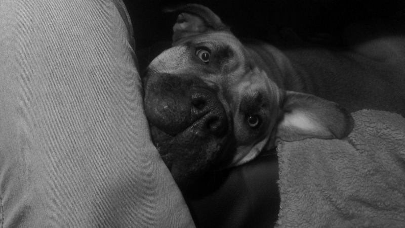 Amanda ligger på gulvet ved føttene mine, men får ikke nok oppmerksomhet, så da kliner hun hodet opp på foten min, *halloooo* liksom. Ikke så enkelt å overse noe slik.