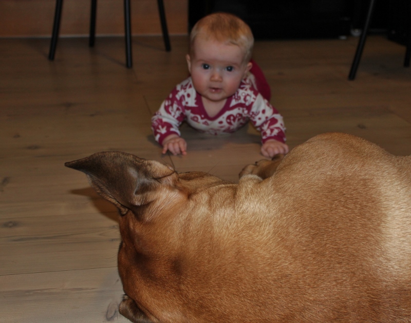 Amanda er jo usedvanlig avslappet, selv med små på gulvet, hun bare velter seg over ende og stoler på de rundt seg.
