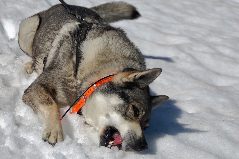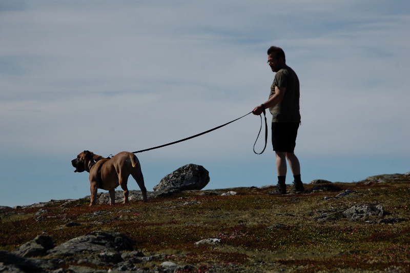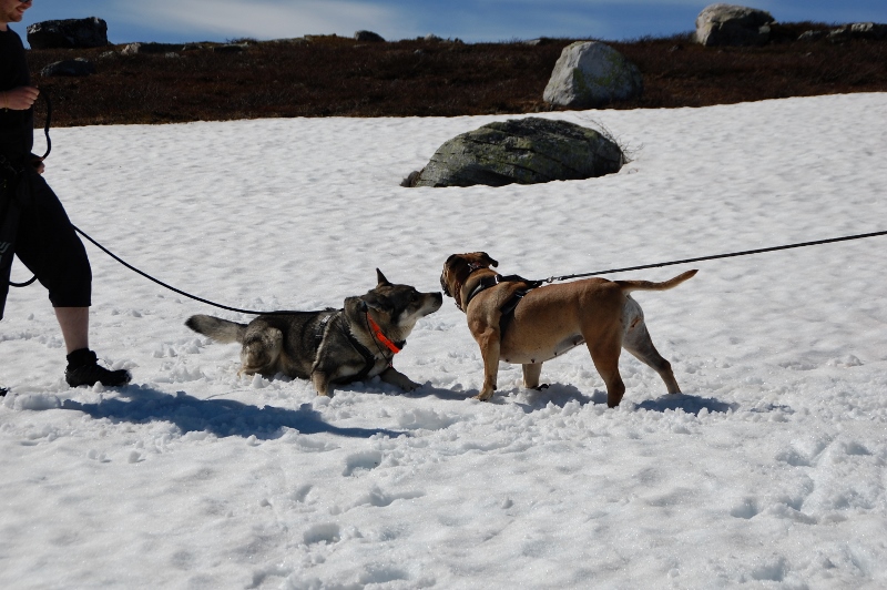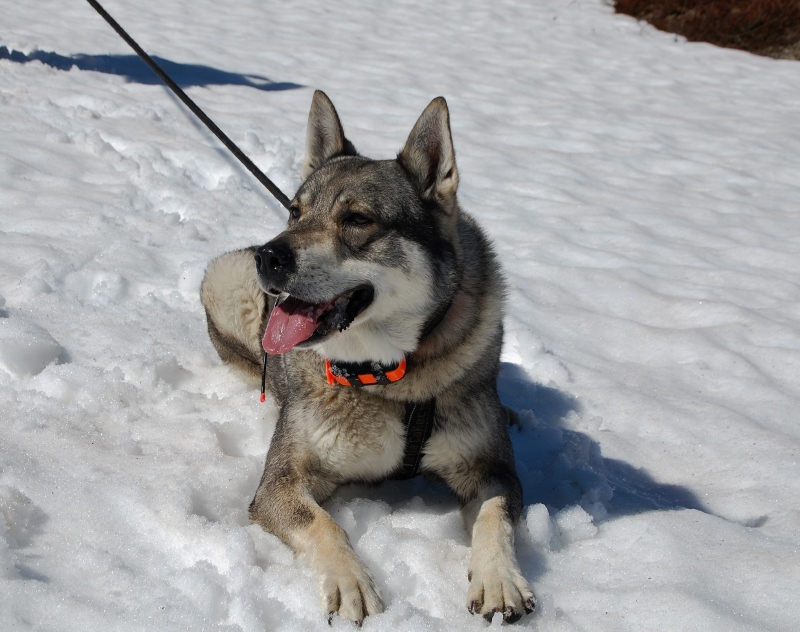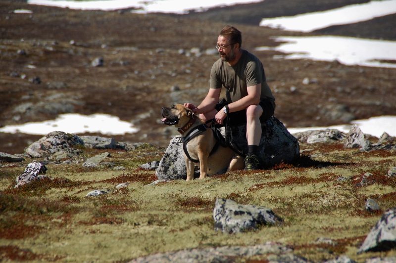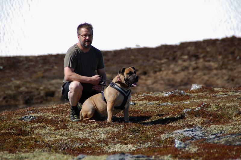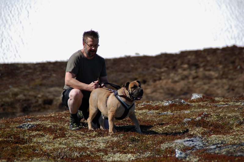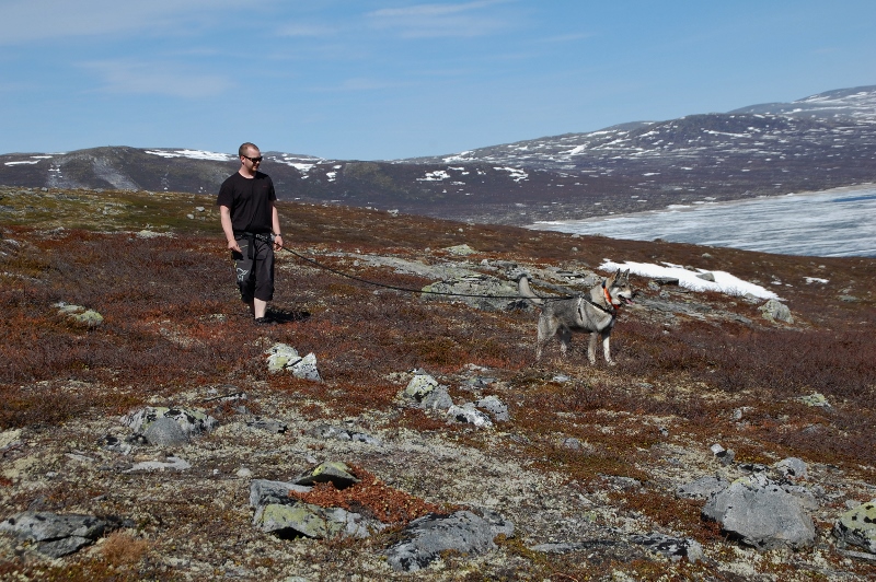 Men jeg synes ikke det var rart at hun ble sliten og la seg ned, terrenget var greit å gå i, men det er jo ikke noen vei, til dels ulendt terreng, en del stein osv osv, så jeg er faktisk imponert over henne disse to dagene hun gikk. Vi hadde noen pauser underveis, men måtte passe på at de ikke ble for lange, skummelt om hun skulle stivne skikkelig, ikke så enkelt å bære henne hjem..