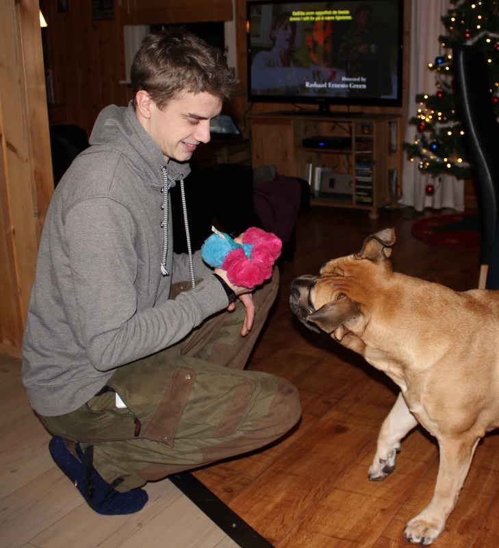 Amanda storkoste seg, og jeg synes det er veldig greit å ha barn som kan leke med Amanda, ikke alle boerboel som kan leke med barn på den måten der.. Nå er mine barn nesten voksne.. yngste er 25 år i dag 😀 Eldste blir 30 år dette året O_o  (Mellomste blir forresten 28 år dette året, slik at jeg ikke har glemt han..) Hvor ble alle disse årene av?