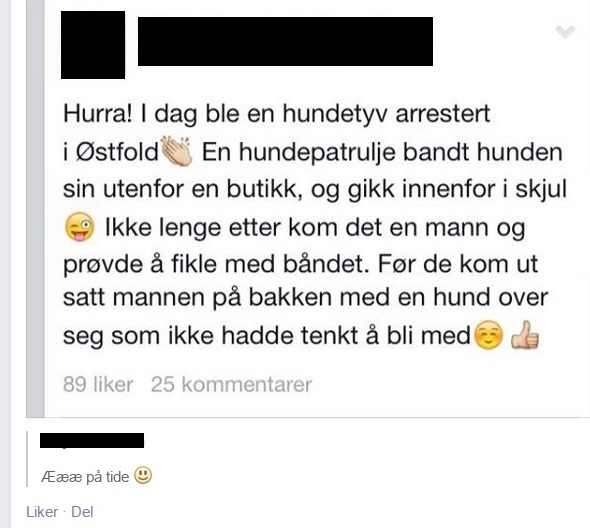 Men så var det den andre hundetyven som ble tatt av politiet da, siden noen skrev det og mange har delt det, så må det da være sant..?