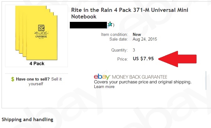 Jeg er jo å ser på ebay nå og da, bare for å se.. og noen ganger dukker det opp veldig gode priser på slik man har bruk for, og ikke bruk for.. Jeg kom over en som solgte billige «Rite in the Rain» loggbøker, 4 pk for under 8 dollar. Da kjøpte jeg tre pakker, og angrer nesten på at jeg ikke kjøpte flere. Disse loggbøkene er veldig dyre, og gode.