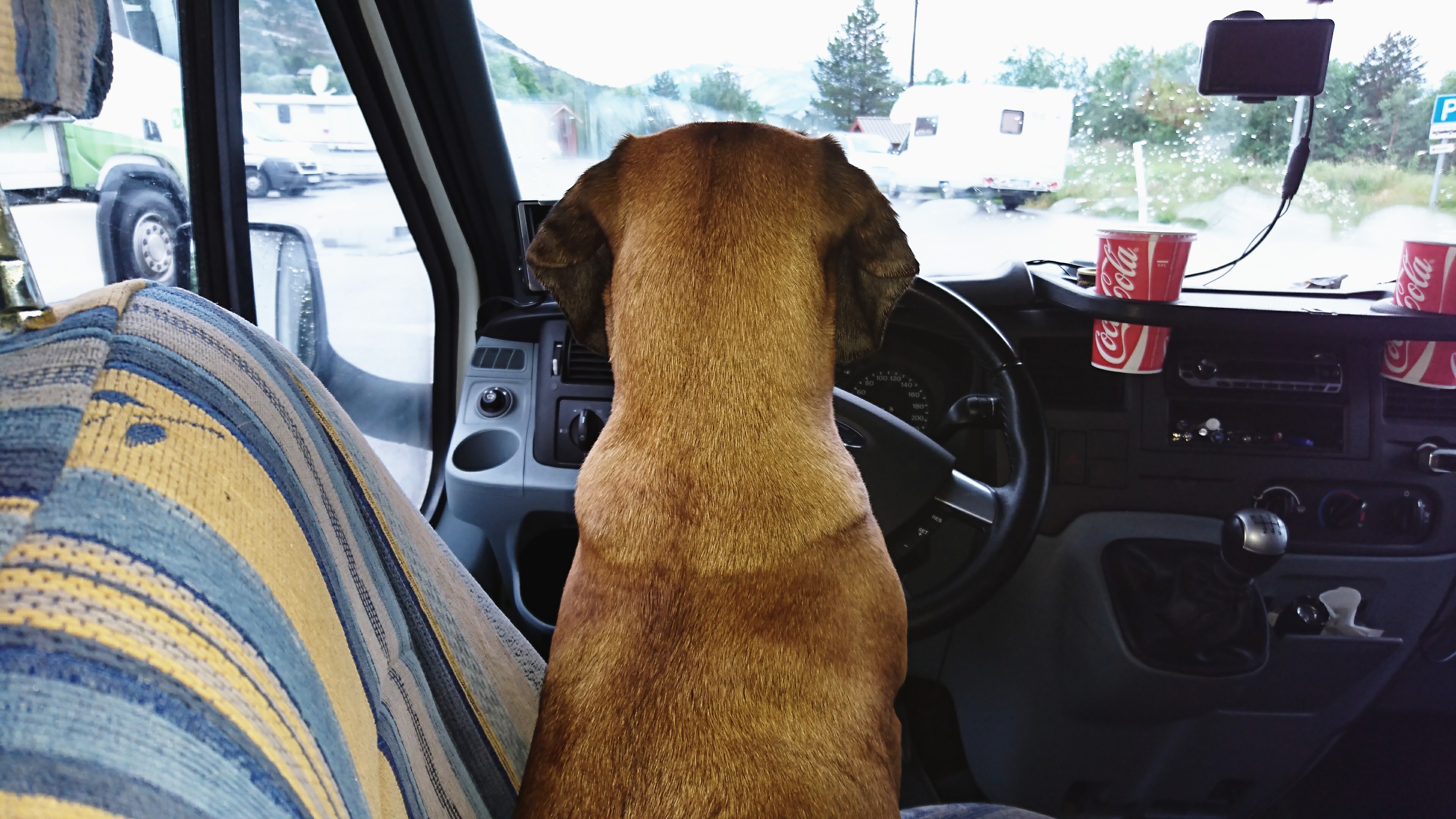 Hun har begynt å våkne tidlig når vi er i bobilen, til og med jeg synes det er i tidligste laget. Nå var jeg forberedt, så i morges gjorde jeg kort prosess! Gidder ikke maset med en hund som piper og maser, så jeg hentet henne i buret og hadde henne opp i sengen til meg. Da sov vi to timer til, og både jeg og Jen var uthvilt og blide 😊😂