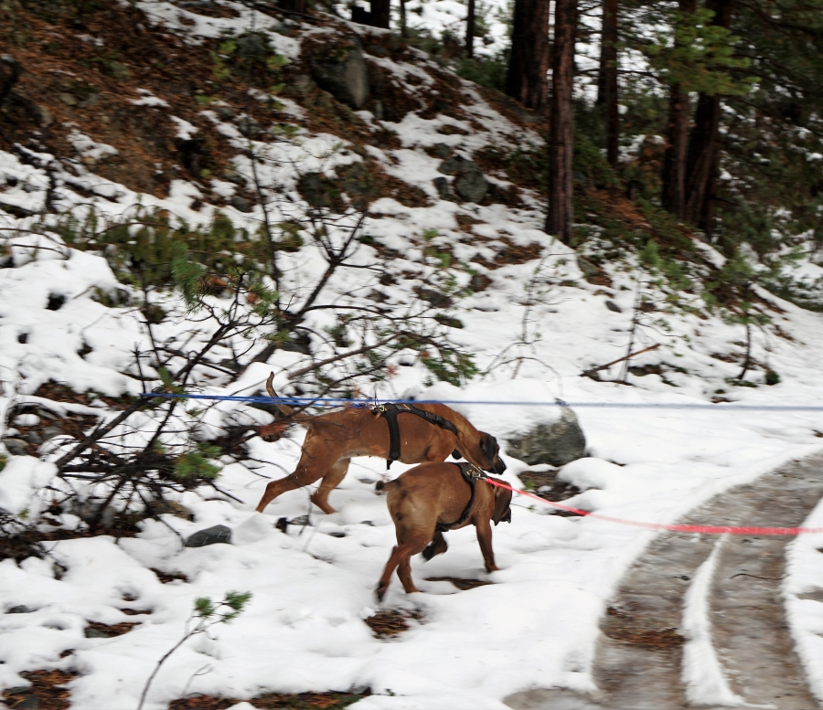 Jeg var litt spent på hvordan det skulle bli, men det gikk over all forventning. Både Jen og Skye gikk veldig greit. Vi gikk hele Kjærlighetsstien, og da fikk de gå med langline.