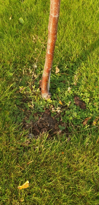 Skye hadde ikke vært her lenge, før vi fant ut at hun er en liten graver. Hun graver både ute og inne.. inne går det helst utover tepper og lignende, så greit nok. Det gikk noenlunde greit ute her også, en stund. Men så begynte hun å grave under ett av frukttrærne, skikkelig! Jordspruten sto rundt henne. Tenkte vi skulle laget til noe å ha der, men måtte uansett ha en rask nødløsning. Heldigvis kom jeg på en løsning vi brukte for en del år siden, når Amanda var valp. Så det var bare å passe på å ta en liten dritt etter Skye, som hadde tørket litt 🙄 Og så legge det under treet som var utsatt. Da ble gravingen selvsagt bare flyttet til de andre trærne.. så nå ligger det litt 💩 under alle trærne 😆