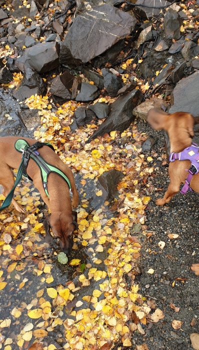 Jeg prøvde å få tatt bilder av hundene sammen når vi gikk litt, men det er jo godt som umulig å få til brukbare bilder 🙄