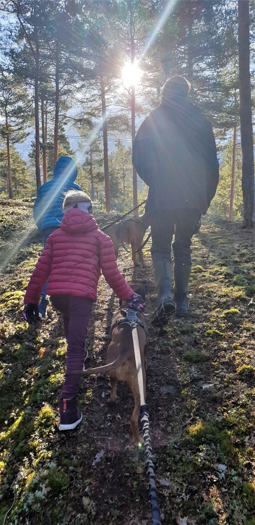 Snøen blir borte i skogen også, er igjen noe is her og der, og den er glatt.. Vi var heldige med været på tur i går, til og med 🌞