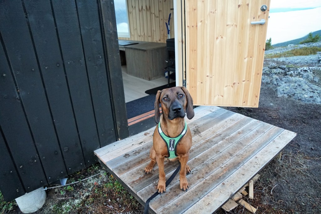 Jeg var litt spent på om det var lov med hund inne på hytta, men når jeg leste skiltet utenfor så fant jeg ut at det var best at hunden var utenfor 😊 Man skal ta av sko utenfor, eller like innenfor døra, og da sier det seg selv at våte og skitne hundepoter ikke er særlig smart å labbe inn der. Blir mye koseligere å innom hytta når det er rent og ryddig der også.