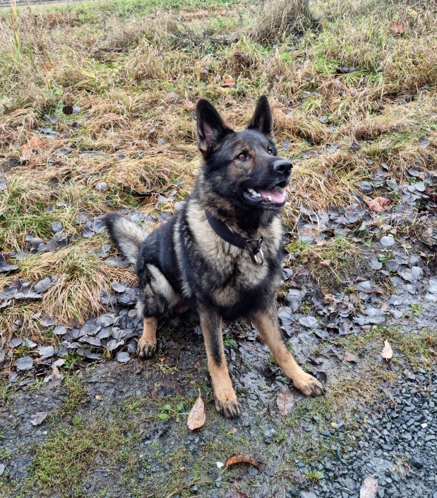 Ikke ett eneste bilde ble det av hundene våre mens vi var der, men det ble av schæferen som var med, og det er en av de flotteste schæferne jeg har sett. Stor og kraftig, med rett rygg. Han gikk for øvrig løs alt mens vi trente der.