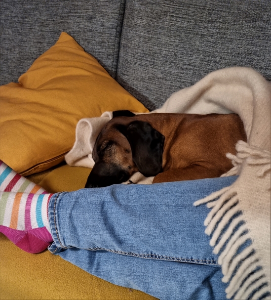 Skye synes det er veldig morsomt og fint med besøk, men Jen elsker det ❤ Hun benytter nesten hver anledning til å ligge på og ved både datteren og barnebarn