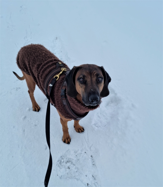 Vi har ikke fått oss ny hund, men Skye ble så mørk i ansiktet på dette bildet, helt merkelig. Prøver jeg å gjøre det lysere så blir alt enda mer feil. Hun har blitt stor jente, og jeg som en liten periode var redd for at hun skulle bli «for liten» 🤣