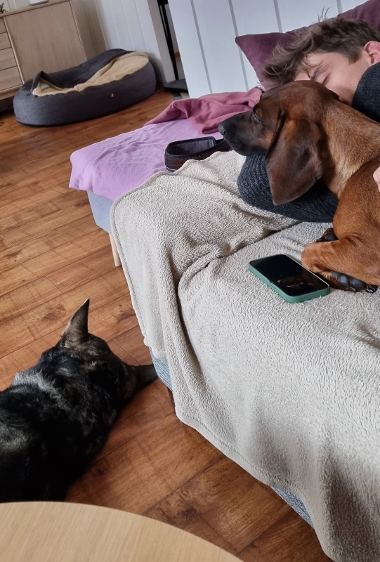 Skye har kost seg med besøk av Nanook, og for å ikke glemme yngste sønn. De så på film, men sovnet fra..