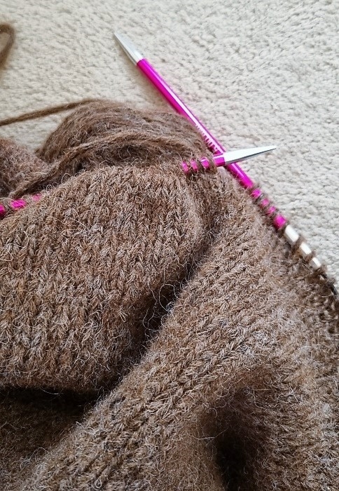 Jeg driver med en genser nå som jeg nesten har gitt opp noen ganger, det går så sent! Føles som jeg aldri blir ferdig, men har lyst på selve genseren. Så da går det framover med en maske nå og en maske da bokstavelig talt 😂