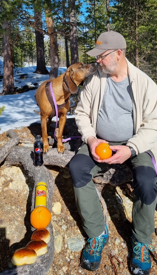 Noen ting blir tradisjon etter 1 år, synes jeg. Blant annet steking av avletter 😁 Ble så vellykket i fjor, så Tore satte seg ned i år også. Den dagen han skulle steke så dro de plutselig ut på et ettersøk først, så ble ikke steking før langt på dag. Tar veldig mange timer å steke noe slik, men det er så verdt det, sier hun som ikke har tålmodighet til det. Men jeg får det ikke til heller, selv om jeg har prøvd mange ganger før. Ettersøk ja, det var -16 den dagen, men gikk helt greit, hun hadde på ullgenser. (Jen var ute på ettersøk i -17 husker jeg, med ullgenser på) Apropos ettersøk, kom noe nytt i år, Sporio. Veldig enkelt og grei måte å få tak i ettersøksekvipasje. Selv om ikke alle er like glade for noe slik tror jeg det er noe som er kommet for å bli, og vil bare bli mer og mer utbredt. Nå skal jeg ikke skrive så mye om de, men noe av kritikken de har fått er hvilken garanti de har for at det stiller en ekvipasje når noe skjer. Vi har flere ganger gått ettersøk for folk som har hatt avtaler med andre ettersøksekvipasjer enn oss, men ikke fått tak i den de har avtale med. Så det skjer nok en del av de med vanlige/private avtaler. Vi legger oss ikke oppi hva som er avtalt med andre, eller hva som skjer. Vi er bare glade for å fått gått ettersøk, til flere til bedre. Vi går også ettersøk der andre har gått med andre hunder først, og noen ganger er det hund nummer to eller tre som må til for at det skal bli funn, eller det blir ikke noe funn på noen av hundene. Det er ikke alltid like enkelt, eller vanskelig. Vi har jo også andre vi kan spørre om vi ikke kommer i mål, er jo flere andre Schweisshunder i bygda 😄 Neida, joda.. er jo ikke bare de som er gode på ettersøk, mange andre som like gode, og noen ganger bedre også. Men er jo en grunn til at man har raser som er avlet til dette.