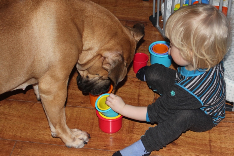 Selv om ungene leker i stuen så velger Amanda ofte å legge seg for å sove i stuen, eller på kjøkkenet. Ikke alltid hun sover så tungt, men noen ganger sovner hun og virkelig sover, med folk rundt seg på alle kanter. Det er veldig godt gjort med tanke på at Amanda er vant til å bo «alene» med oss, og at det vanligvis er veldig rolig her. For å inne snakke om barn som lærer å forholde seg til hund.
