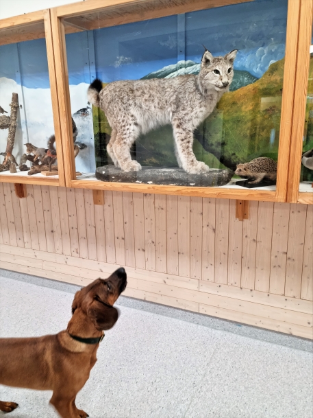For å ikke starte innlegget med et dødt dyr, som kommer lenger nede her, så kommer bilde av Skye og et annet dyr vi møtte på når vi gikk et drev