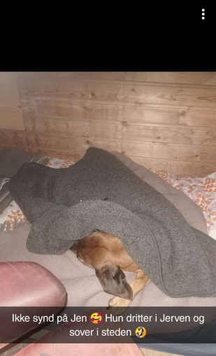 Det ble en skikkelig nedtur når blodprøven viste så dårlig resultat for Jen siste gangen. Vi var ikke forberedt på et slik resultat, siden blodprøven egentlig bare ble tatt for å se at hun holdt seg stabil. Men man må gjøre det beste utav det, og slik det er nå så går det helt greit med Jen. Vi tar litt mer hensyn i forhold til vær, temperaturer og turer. Hun storkoser seg både på turer og foran ovnen ❤