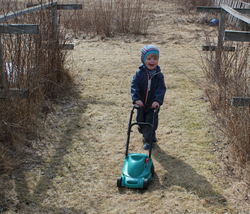 I går var vi litt heldige med været, var ikke slik veldig bra, men ok. Jeg tok med Amanda ut for å rake litt, i vinden. Jeg ga meg etterhvert, siden det viste seg å være litt fånyttes, så håper på dager uten vind.