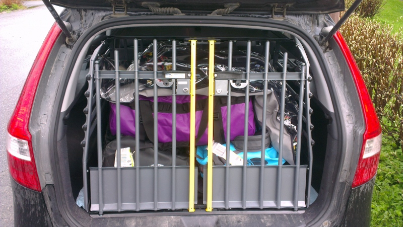 Kjøreturen hjem var lang, men noen hadde glemt å ta ut buret i bilen, så vi fikk ihvertfall sikret bagasjen vår