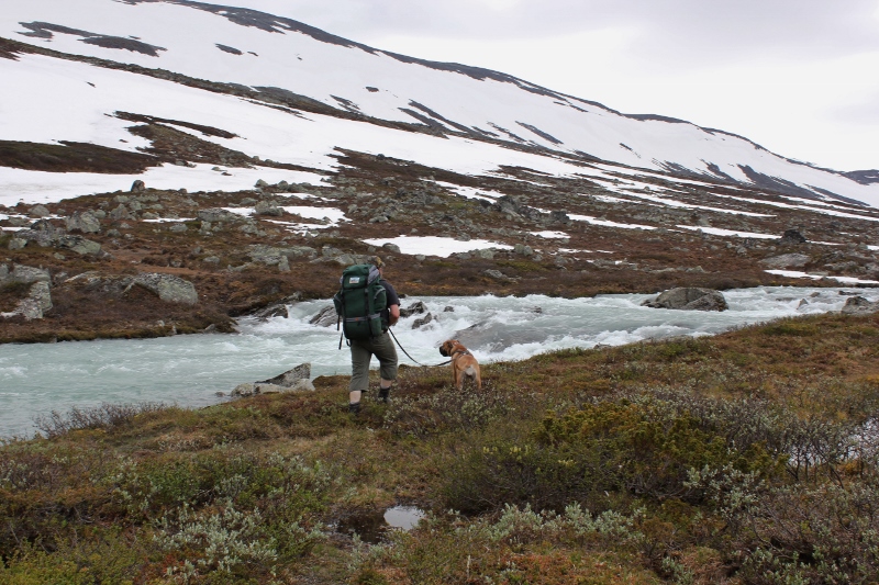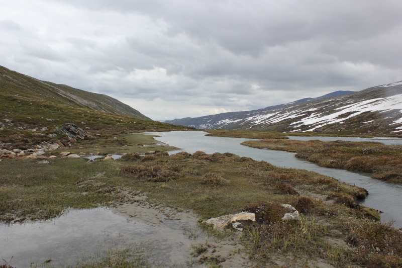 Vi har gått framover så vi ser ned i dalen. Tore hadde på forhånd vist og forklart oss hvor det kunne være lurt å gå. Det er ingen sti, rute eller noe fra Sottjønn og ned til Grønnstorr, så man må bare finne passende steder å gå selv. Vi var veldig heldige med vårt valg . Fra vi gikk fra hytta til vi var nede i dalen tok det ca en time. Vi valgte å gå nokså direkte ned, og så følge elva mot Grønnstorr. Kunne vært morsomt å gått fjellet bortover også, og ned ved Grønnstorr, men det får bli en annen gang.